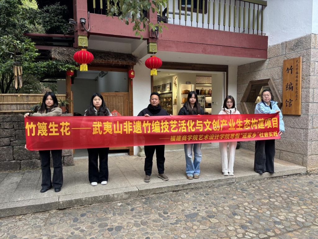 为深入学习贯彻习近平文化思想,落实学校“追寻领袖足迹 激发文化创新创造活力”寒假社会实践活动的部署要求,福建商学院艺术设计学院“竹篾生花——武夷山非遗竹编技艺活化与文创产业生态构建项目”社会实践团队于2026年寒假奔赴武夷山,开展以非物质文化遗产武夷山竹编技艺为载体的专题调研。团队通过实地探访传承基地、对话非遗传承人、记录技艺脉络,引导青年学子在追寻文化根脉中体悟匠心智慧,在传承实践中激发创新活力,积极探索传统工艺在当代的创造性转化与创新性发展路径,以实际行动践行文化传承的青年担当。