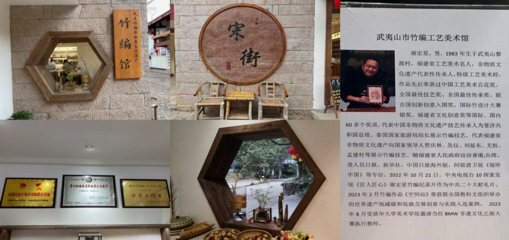 图1:武夷山竹编馆及竹编非遗传承人谢宏星老师教团队成员编织技法